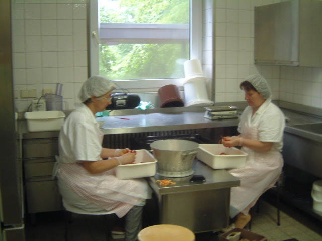Das Mittagessen wird für alle Schüler und Lehrer im Speisesaal täglich frisch von unserem Küchenpersonal - Frau Neusser, Frau Lovric und Frau Gumbas - zubereitet. 1. Mittagessen: 12.30 – 13.00 Uhr 2. Mittagessen: 13.15 – 13.45 Uhr